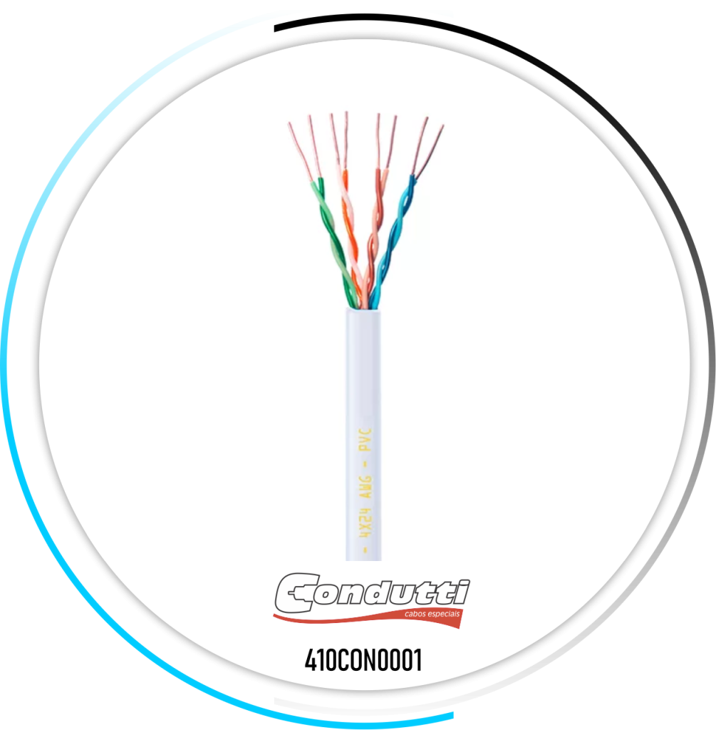 4 Pares Trançados: O cabo possui 4 pares trançados, totalizando 8 vias sólidas, proporcionando a melhor qualidade de sinal possível.